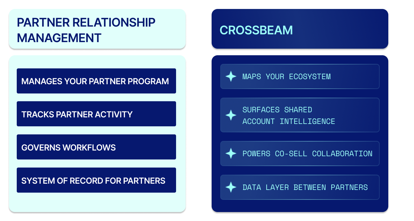 A PRM tells you what's happening inside your partner program. Crossbeam tells you what's happening in the market across your shared ecosystem.
