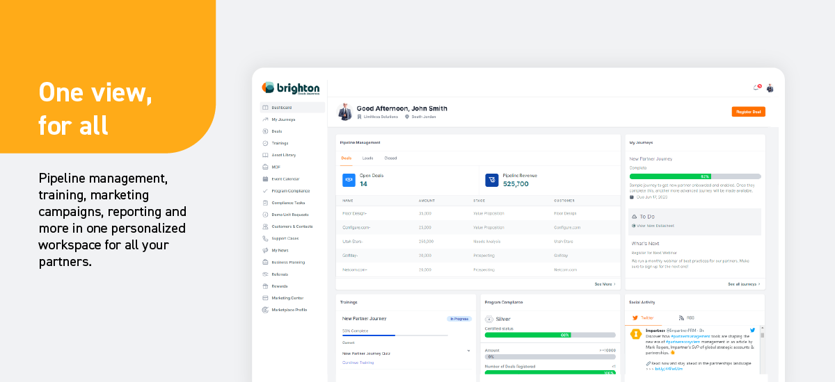 PRM tools allow partner managers to remove redundant steps from their workflows and optimize — or even automate — essential tasks like onboarding, training, and lead registration. In turn, they can accomplish more in less time, keeping partners productive and engaged. And engaged partners lead to a stronger ecosystem.